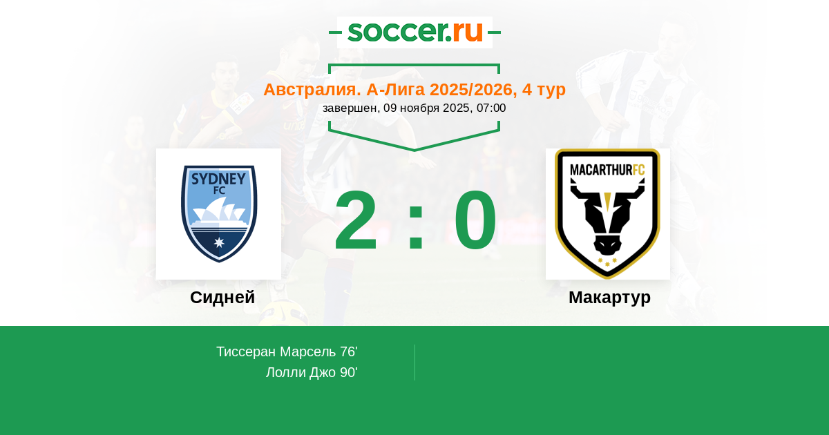 Сидней - Макартур: обзор матча 9 ноября 2025