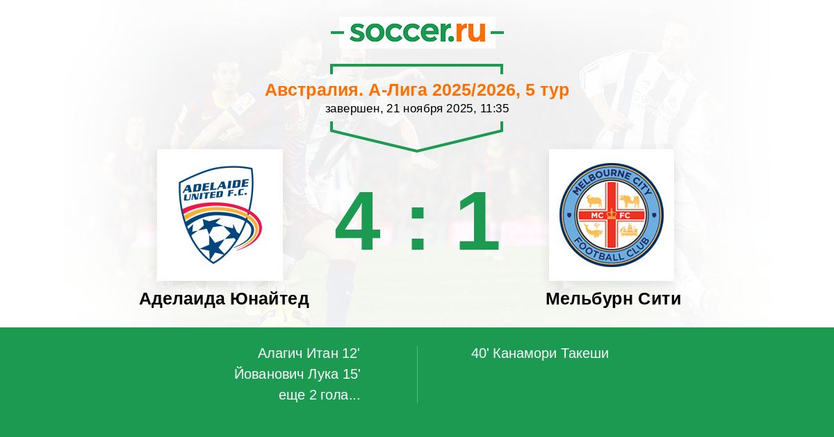 Аделаида Юнайтед - Мельбурн Сити: обзор матча 21 ноября 2025