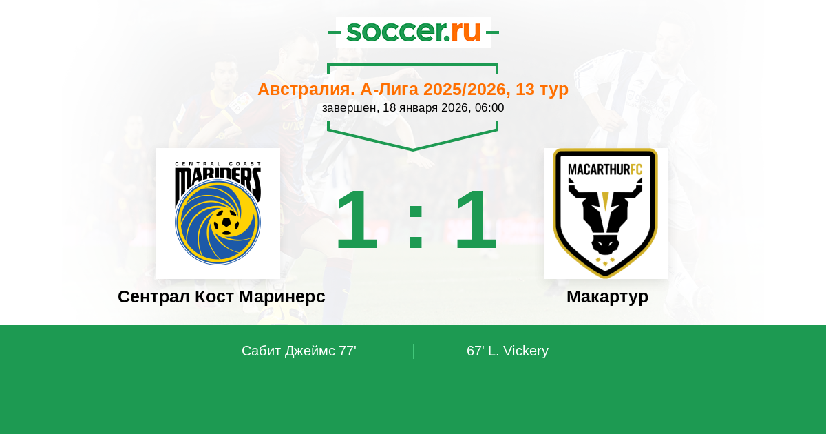Сентрал Кост Маринерс - Макартур: обзор матча 18 января 2026