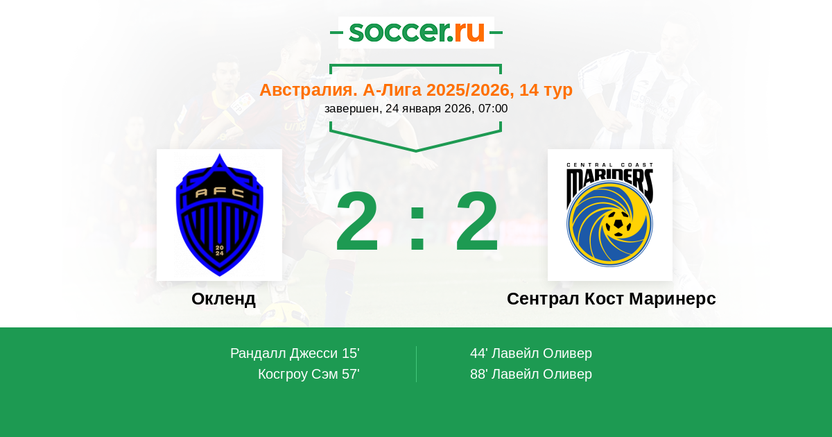 Окленд - Сентрал Кост Маринерс: обзор матча 24 января 2026