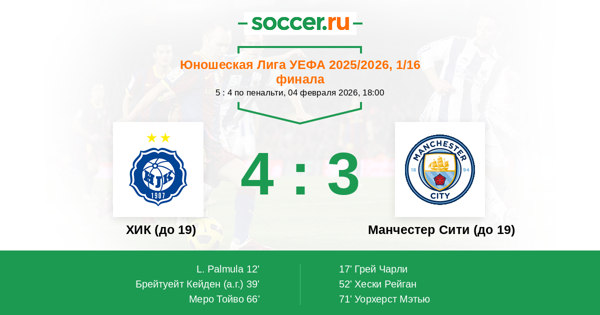 ХИК (до 19) - Манчестер Сити (до 19): обзор матча 4 февраля 2026