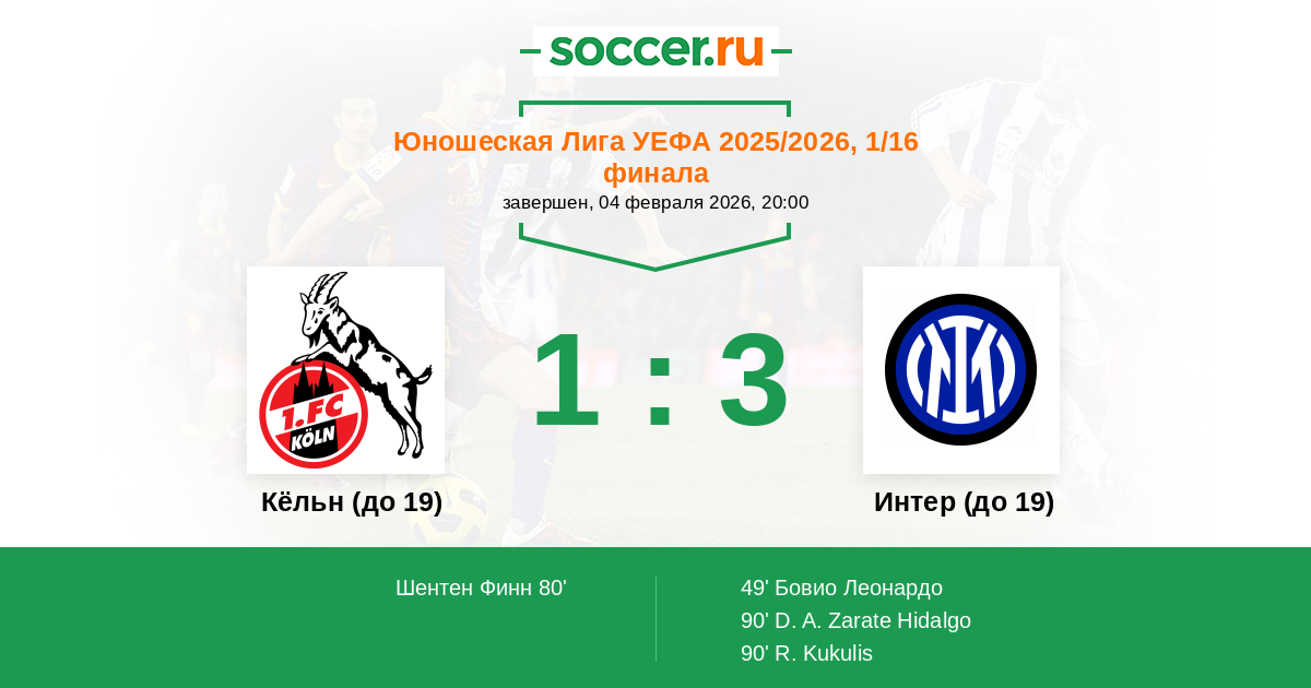 Кёльн (до 19) - Интер (до 19): обзор матча 4 февраля 2026