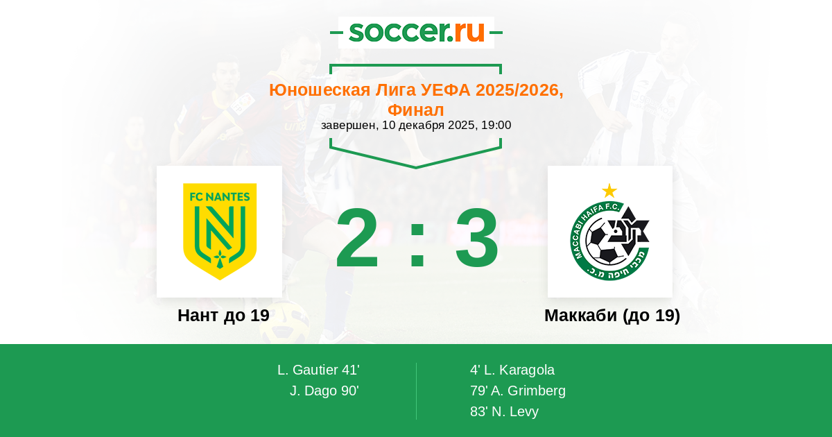 Нант до 19 - Маккаби (до 19): обзор матча 10 декабря 2025