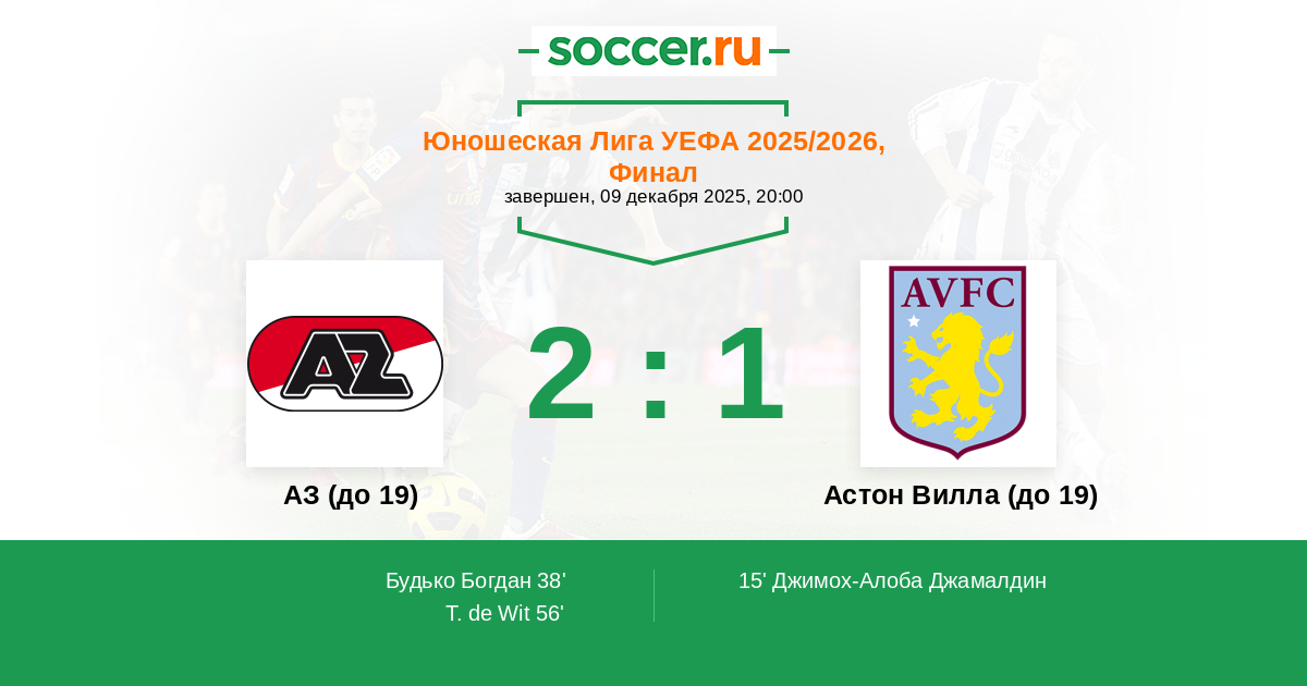 АЗ (до 19) - Астон Вилла (до 19): обзор матча 9 декабря 2025