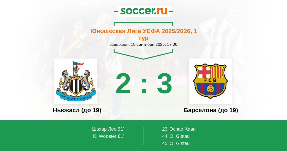 Ньюкасл (до 19) - Барселона (до 19): обзор матча 18 сентября 2025