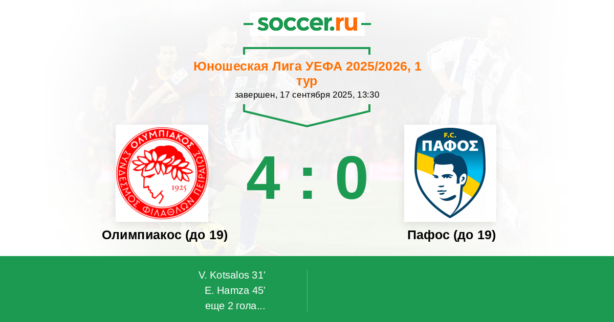 Олимпиакос (до 19) - Пафос (до 19): обзор матча 17 сентября 2025