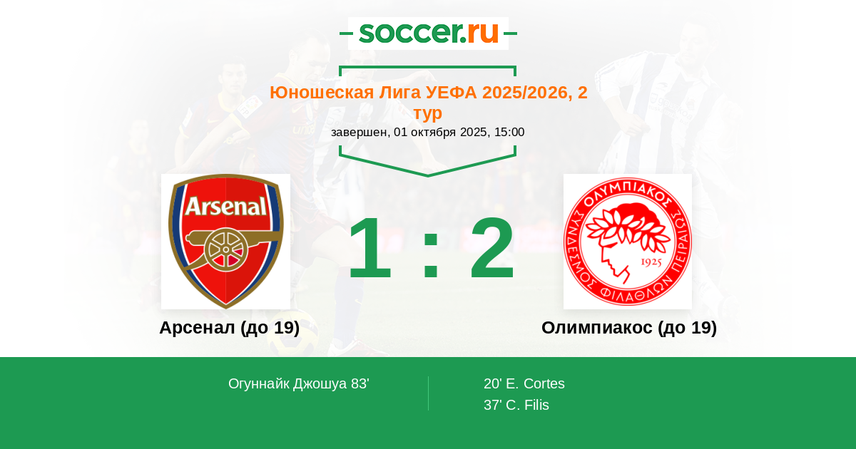 Арсенал (до 19) - Олимпиакос (до 19): обзор матча 1 октября 2025