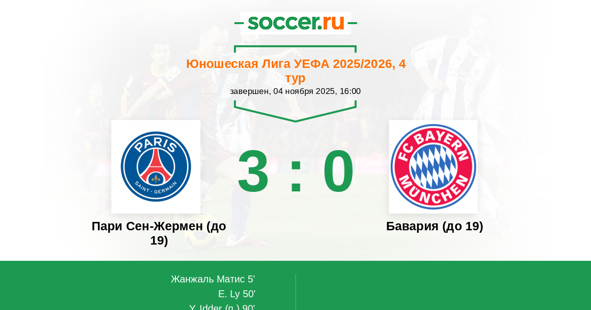 Пари Сен-Жермен (до 19) - Бавария (до 19): обзор матча 4 ноября 2025