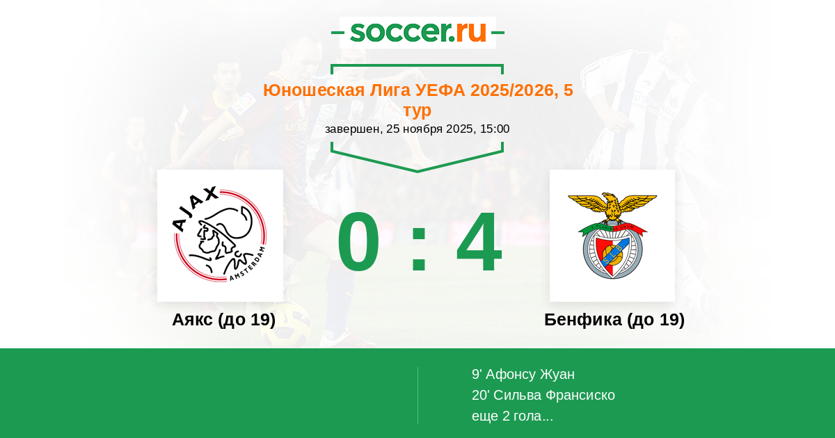 Аякс (до 19) - Бенфика (до 19): обзор матча 25 ноября 2025