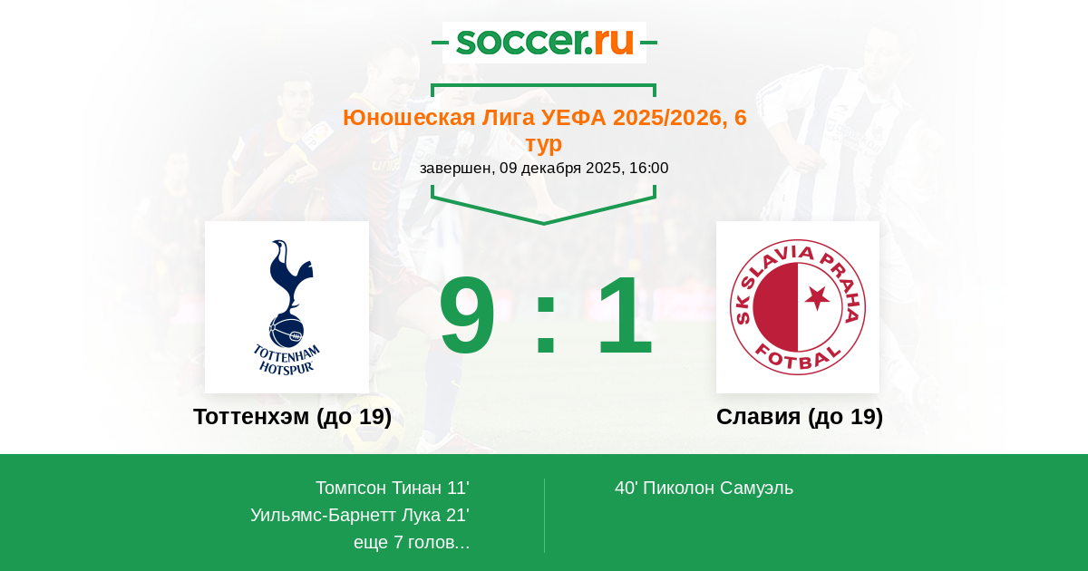 Тоттенхэм (до 19) - Славия (до 19): обзор матча 9 декабря 2025