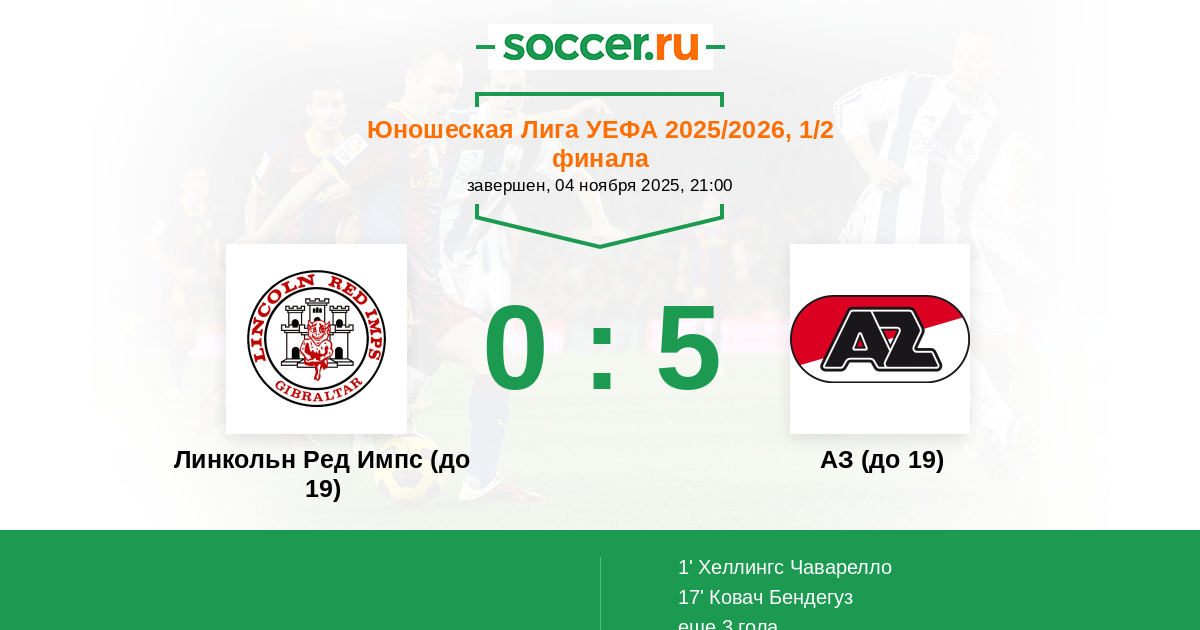 Линкольн Ред Импс (до 19) - АЗ (до 19): обзор матча 4 ноября 2025