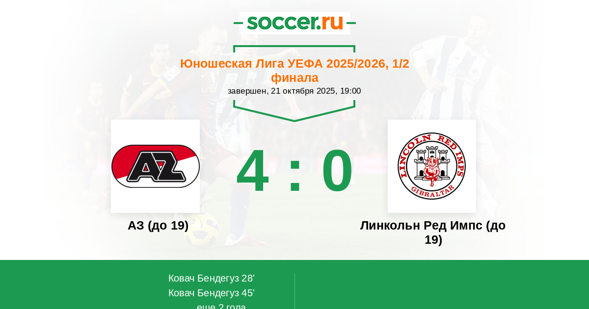 АЗ (до 19) - Линкольн Ред Импс (до 19): обзор матча 21 октября 2025