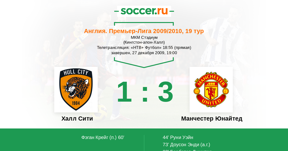 Халл Сити - Манчестер Юнайтед: обзор матча 27 декабря 2009