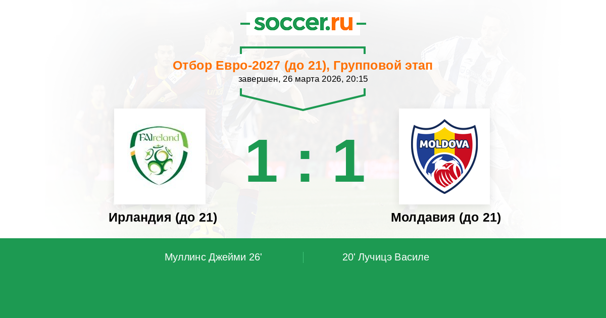 Ирландия (до 21) - Молдавия (до 21): обзор матча 26 марта 2026