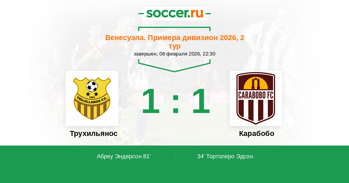 Трухильянос - Карабобо: обзор матча 8 февраля 2026