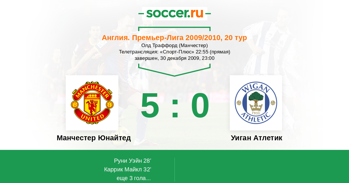 Манчестер Юнайтед - Уиган Атлетик: обзор матча 30 декабря 2009