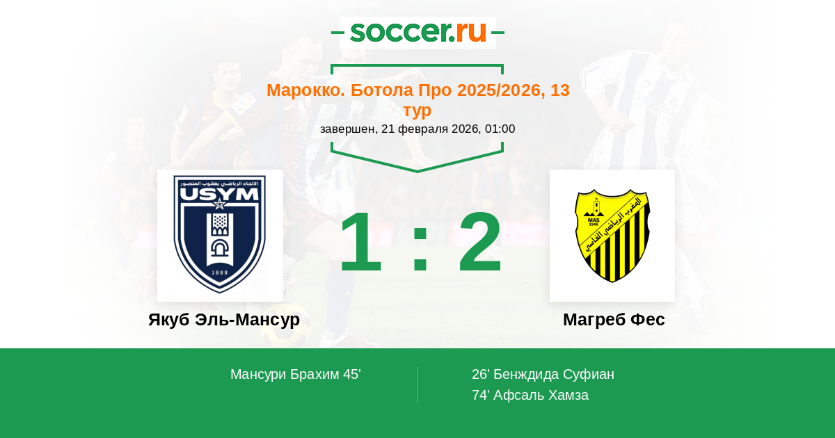 Якуб Эль-Мансур - Магреб Фес: обзор матча 21 февраля 2026
