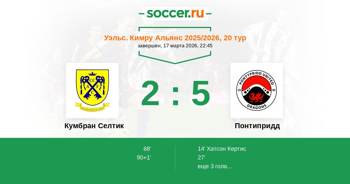 Кумбран Селтик - Понтипридд: обзор матча 17 марта 2026