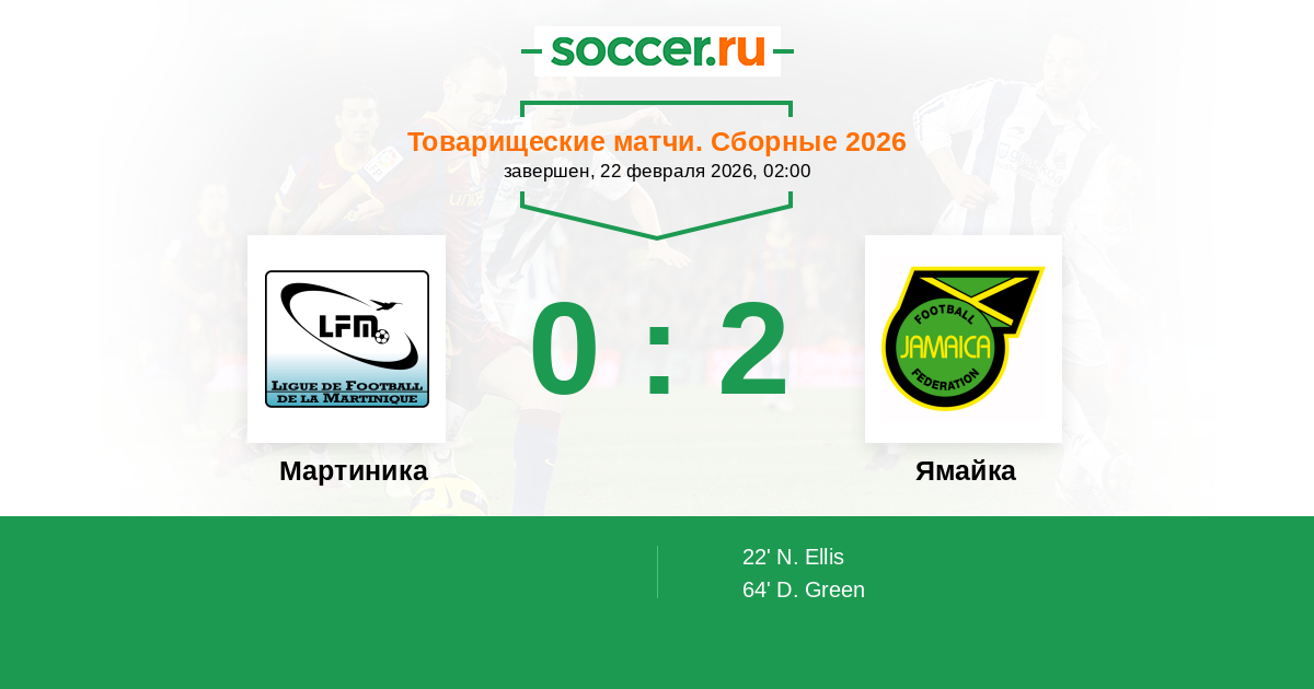 Мартиника - Ямайка: обзор матча 22 февраля 2026