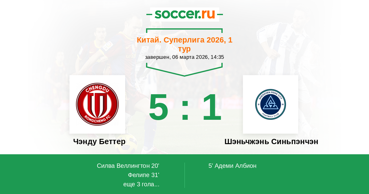 Чэнду Беттер - Шэньчжэнь Синьпэнчэн: обзор матча 6 марта 2026
