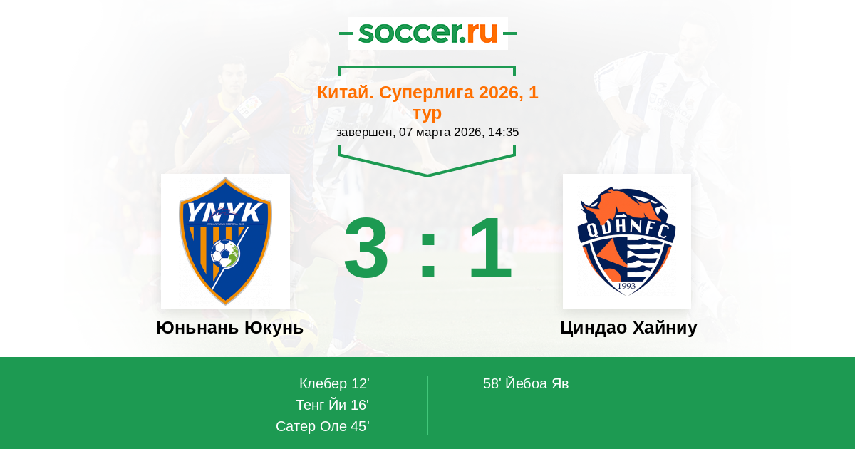 Юньнань Юкунь - Циндао Хайниу: обзор матча 7 марта 2026