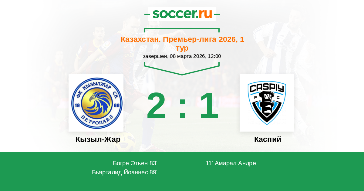 Кызыл-Жар - Каспий: обзор матча 8 марта 2026
