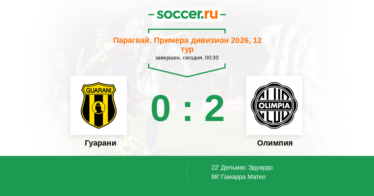 Гуарани - Олимпия: обзор матча 22 марта 2026