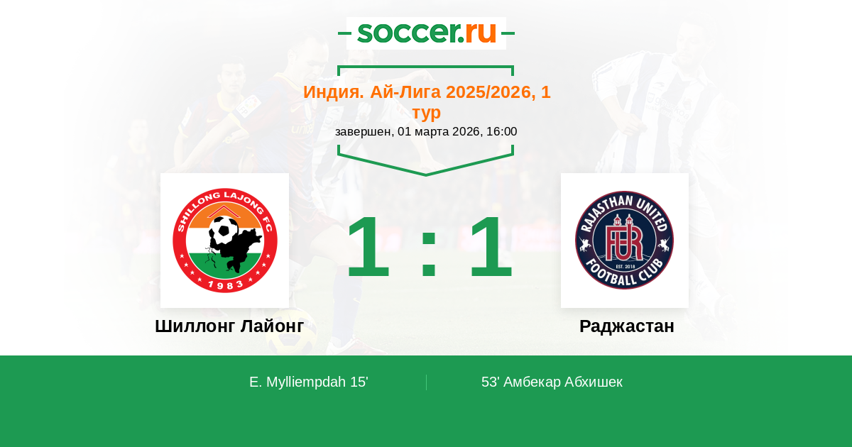 Шиллонг Лайонг - Раджастан: обзор матча 1 марта 2026