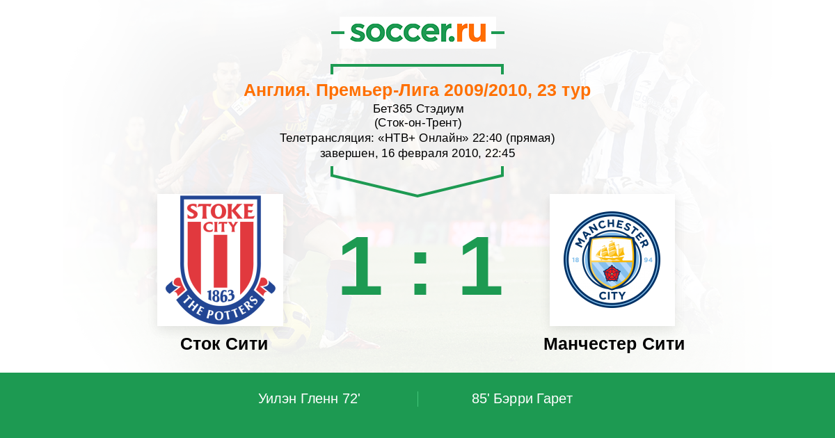 Сток Сити - Манчестер Сити: обзор матча 16 февраля 2010