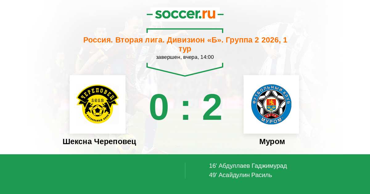 Шексна Череповец - Муром: обзор матча 29 марта 2026