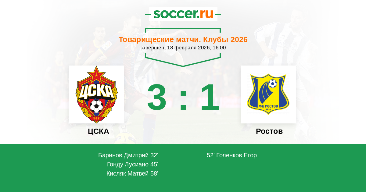 ЦСКА - Ростов: обзор матча 18 февраля 2026