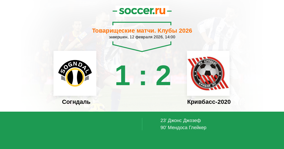 Согндаль - Кривбасс-2020: обзор матча 12 февраля 2026