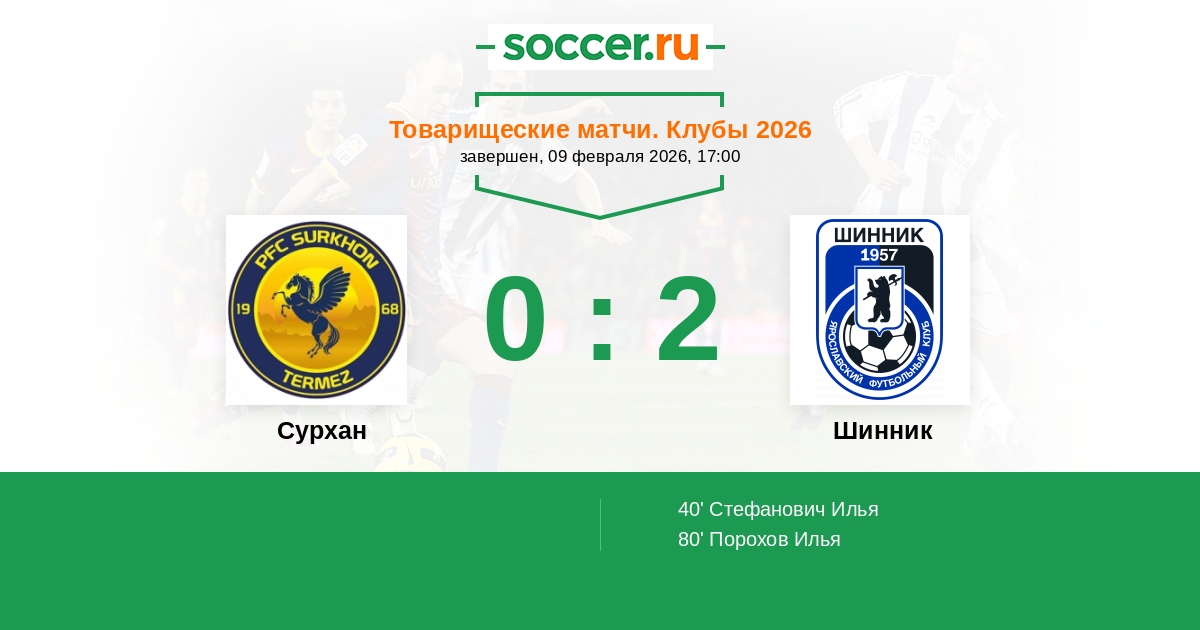 Сурхан - Шинник: обзор матча 9 февраля 2026