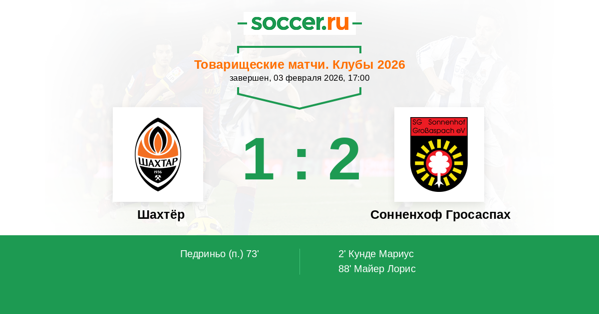 Шахтёр - Сонненхоф Гросаспах: обзор матча 3 февраля 2026