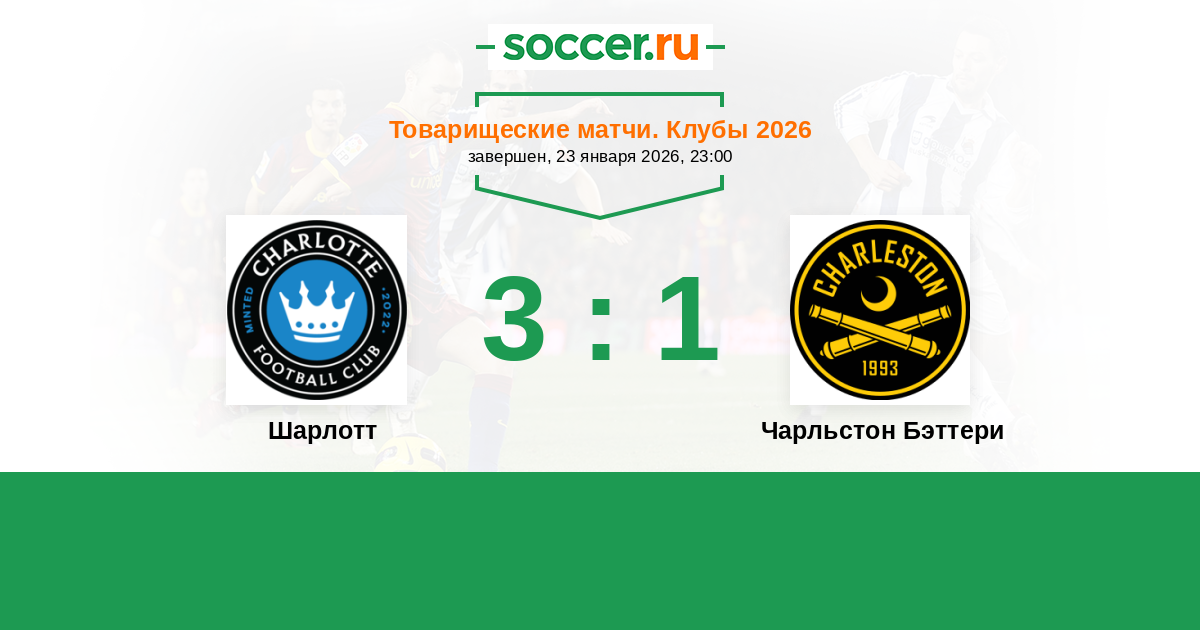 Шарлотт - Чарльстон Бэттери: обзор матча 23 января 2026