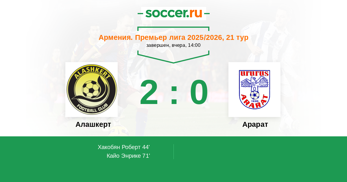 Алашкерт - Арарат: обзор матча 14 апреля 2026