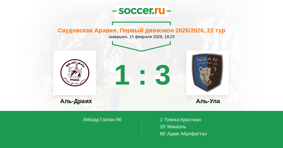 Аль-Драих - Аль-Ула: обзор матча 15 февраля 2026