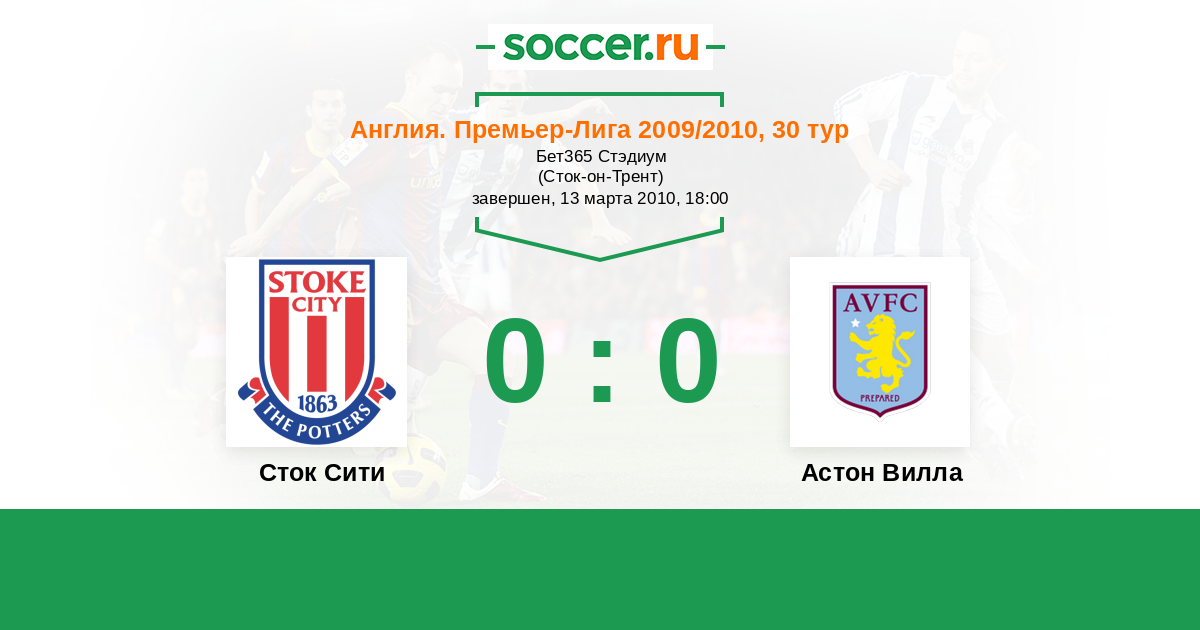 Сток Сити - Астон Вилла: обзор матча 13 марта 2010