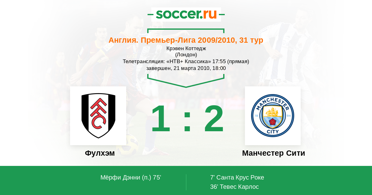 Фулхэм - Манчестер Сити: обзор матча 21 марта 2010