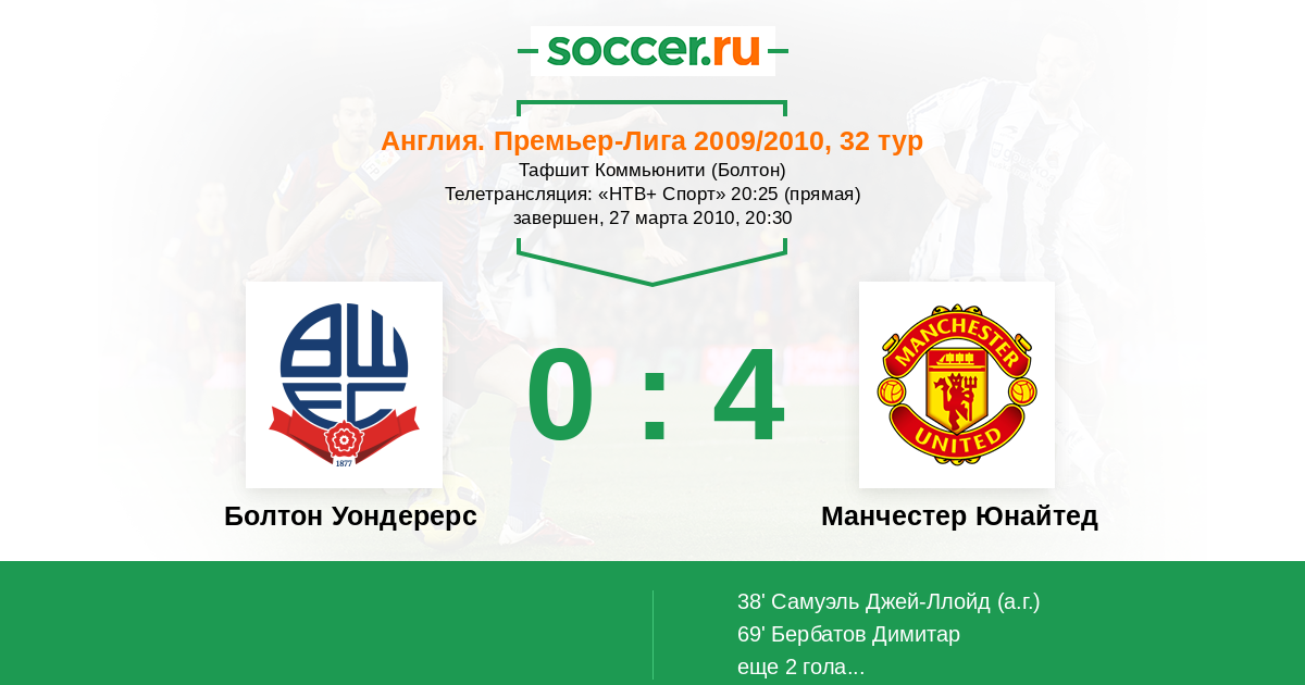 Болтон Уондерерс - Манчестер Юнайтед: обзор матча 27 марта 2010