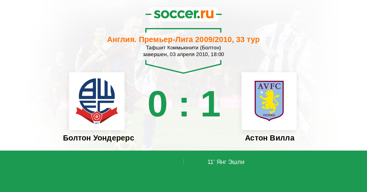Болтон Уондерерс - Астон Вилла: обзор матча 3 апреля 2010