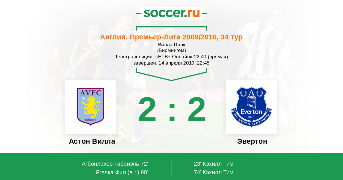 Астон Вилла - Эвертон: обзор матча 14 апреля 2010