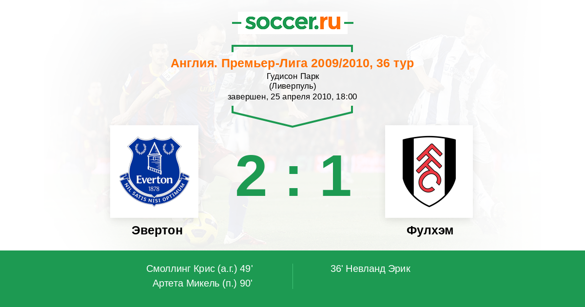 Эвертон - Фулхэм: обзор матча 25 апреля 2010