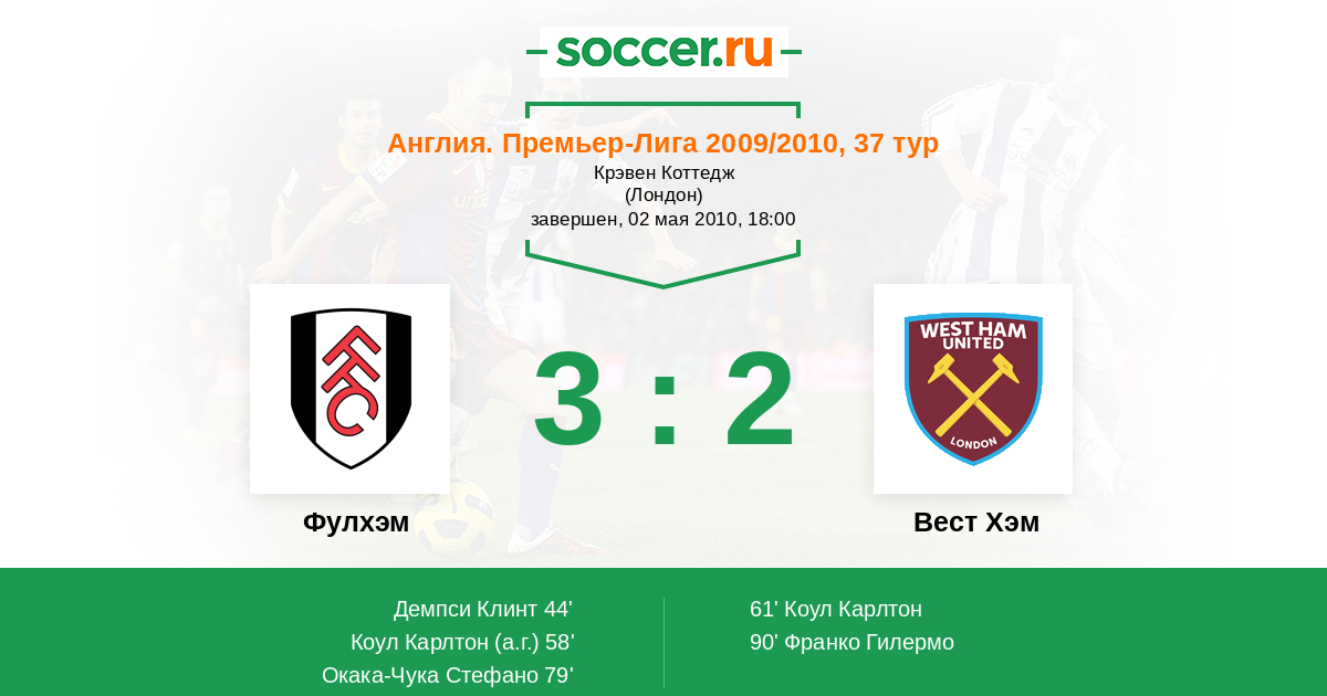 Фулхэм - Вест Хэм: обзор матча 2 мая 2010
