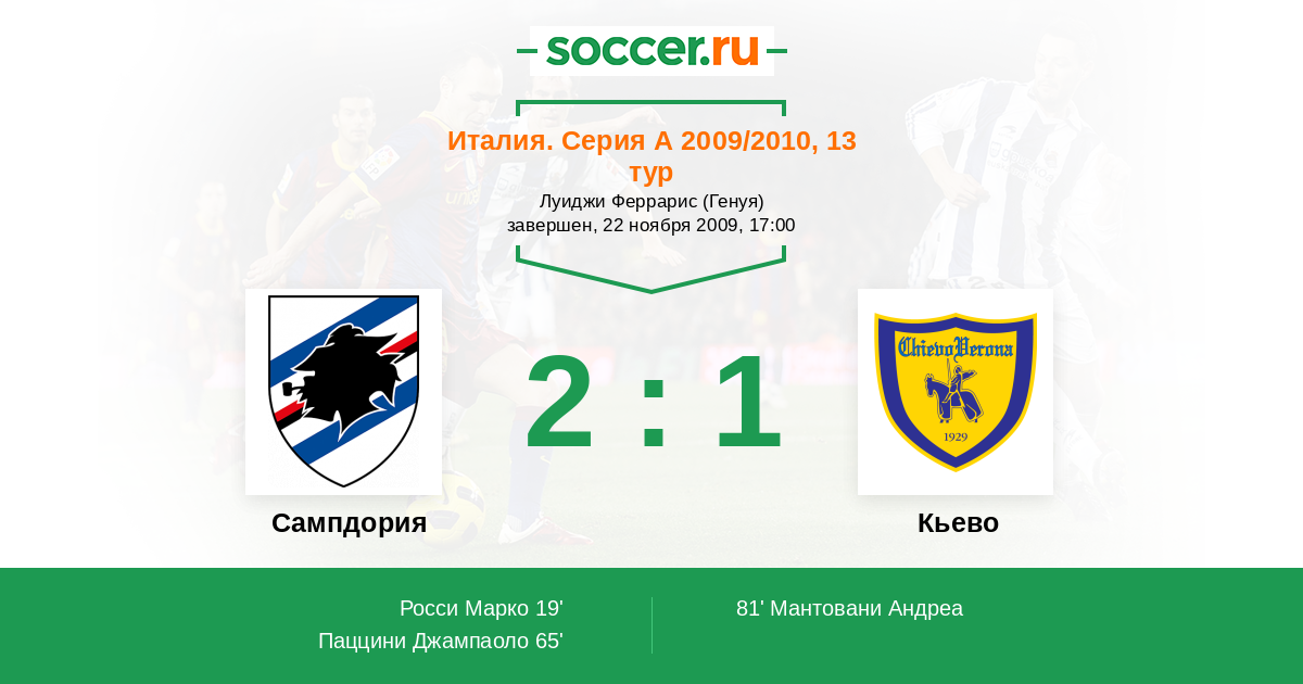 Сампдория - Кьево: обзор матча 22 ноября 2009