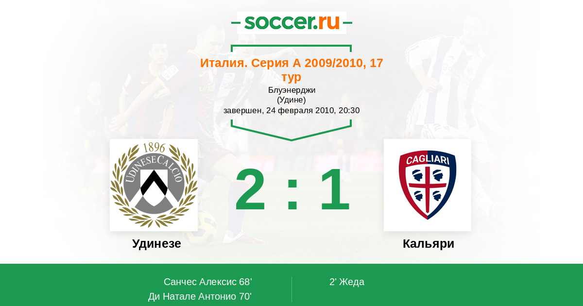 Удинезе - Кальяри: обзор матча 24 февраля 2010