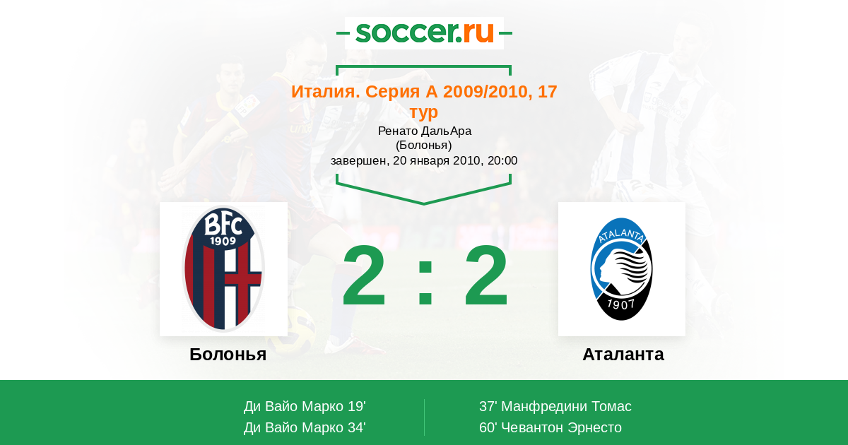 Болонья - Аталанта: обзор матча 20 января 2010