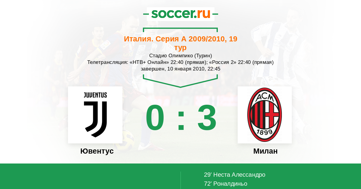 Ювентус - Милан: обзор матча 10 января 2010