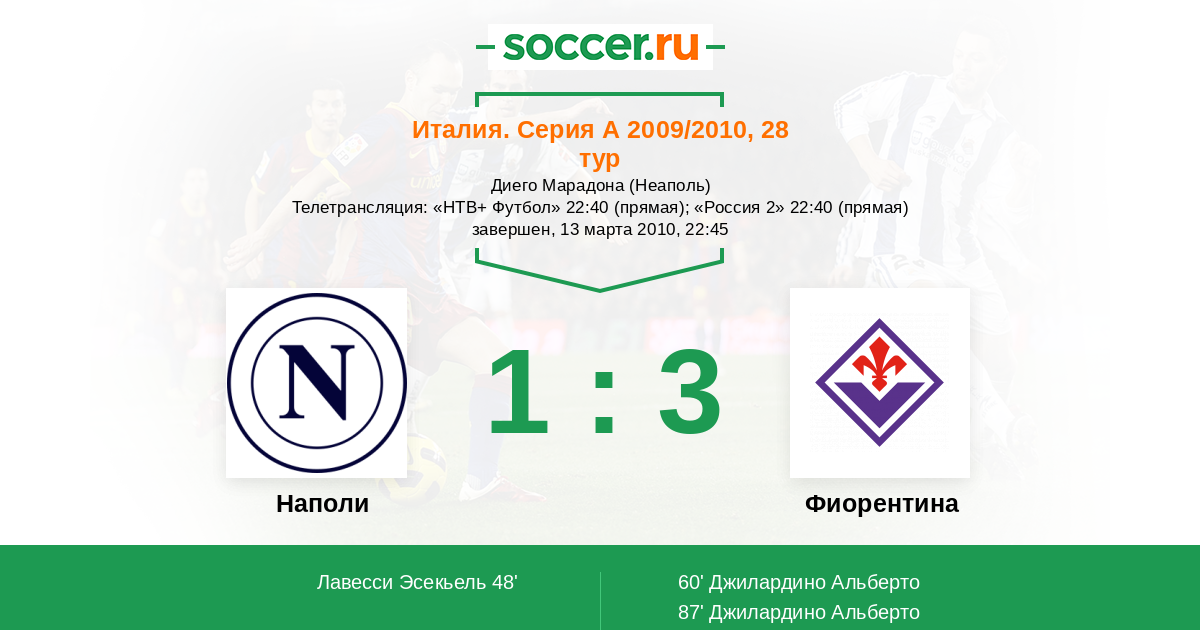 Наполи - Фиорентина: обзор матча 13 марта 2010