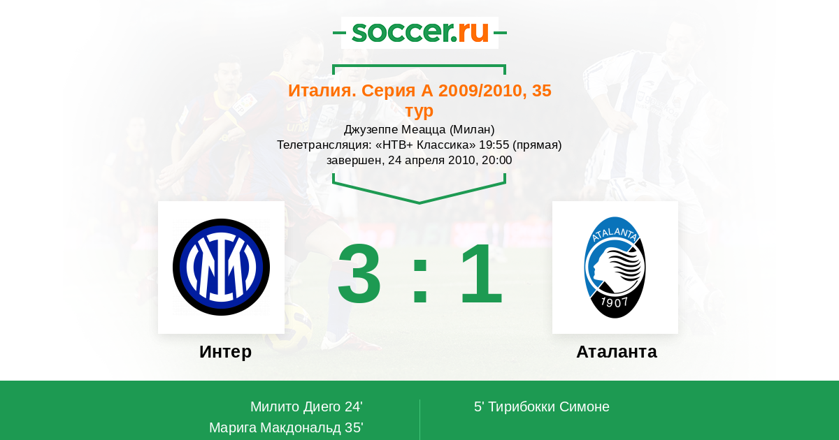 Интер - Аталанта: обзор матча 24 апреля 2010